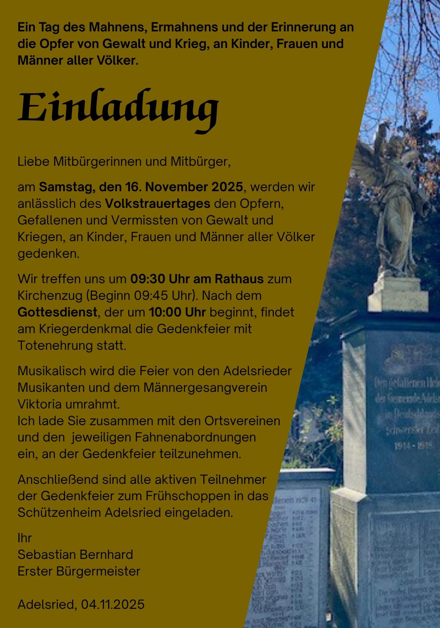 Es freut uns auch, dass die katholische sowie evangelische Kirche mit unterstützen und mit jeweils einem Vertreter vor Ort sein wird und gerne für Gespräche bereitstehen.
